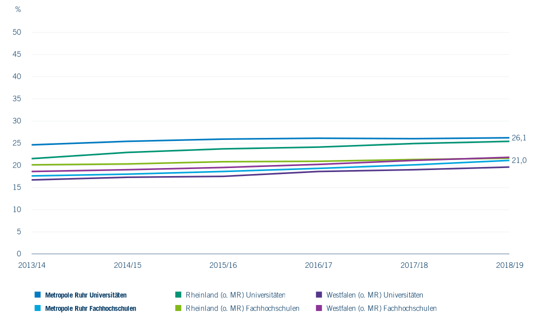 Wie bereits dargelegt wurde, studieren in der Metropole Ruhr weniger Frauen als in den Vergleichsregionen. In diesem Unterkapitel wird deshalb die Situation der Studentinnen in der Metropole Ruhr genauer betrachtet.