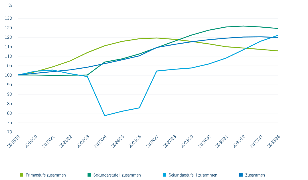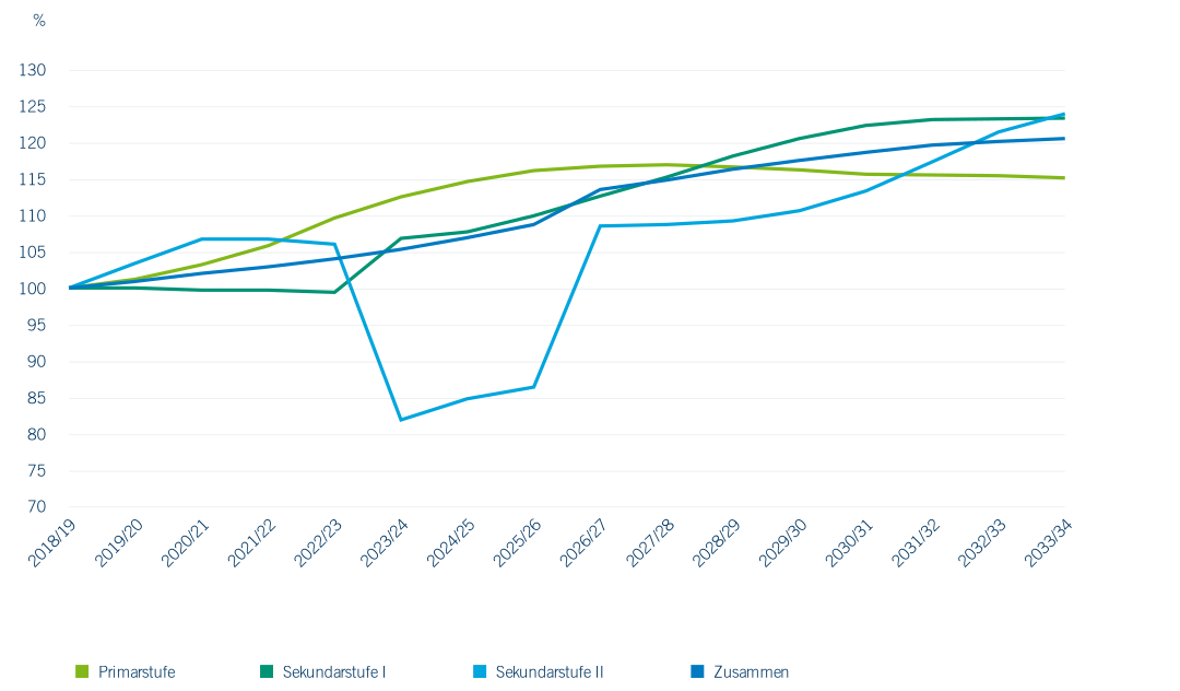 Zunahme der für das Pflichtschulsystem relevanten Altersgruppe bis 2033
