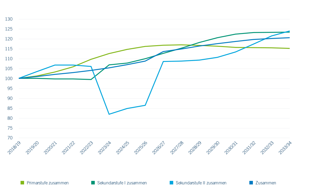 Insgesamt ist nach der Modellrechnung auch längerfristig in allen Bildungsstufen aufgrund der verstärkten Zuwanderung und Geburtenentwicklung mit einem deutlichen Anstieg der Schüler*innenzahlen zu rechnen.