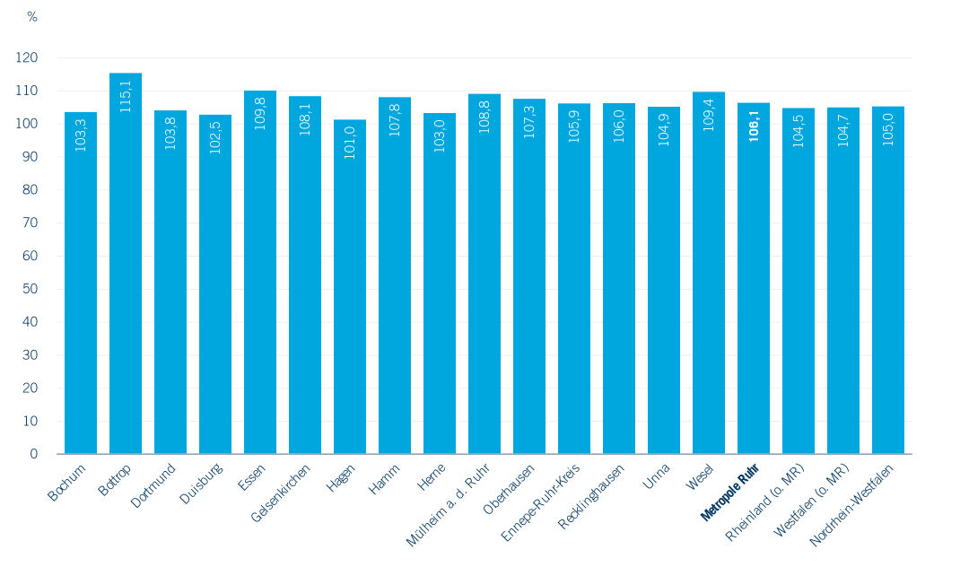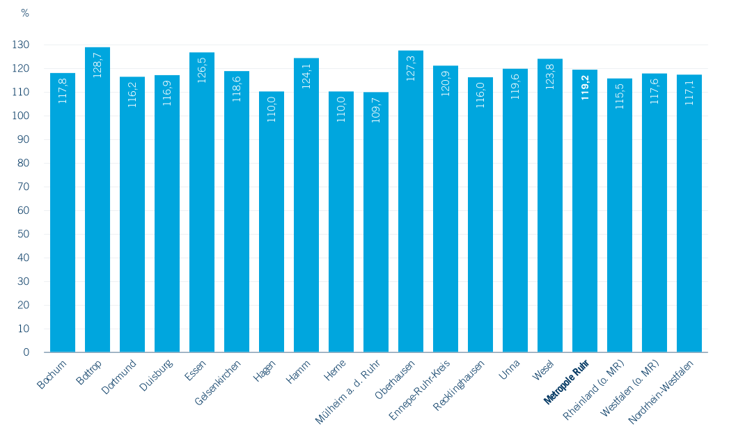Nach wie vor sind deutliche Unterschiede zwischen den einzelnen Kommunen und auch teils gegenläufige Entwicklungen zu beobachten (Abbildung 2.6). Der